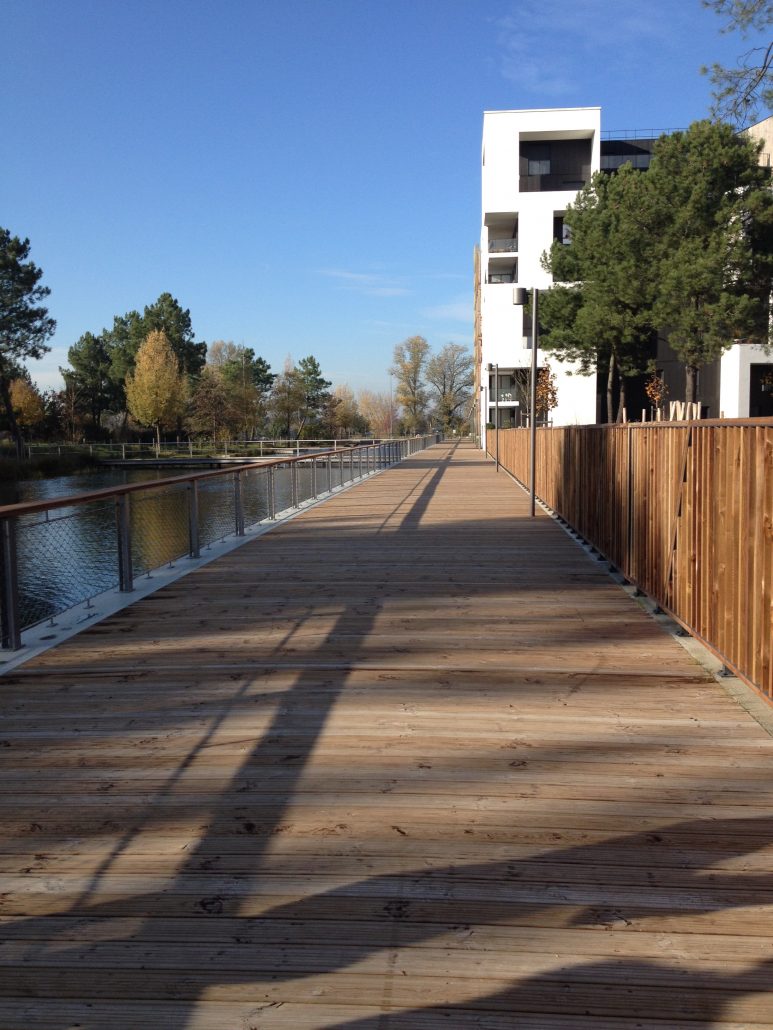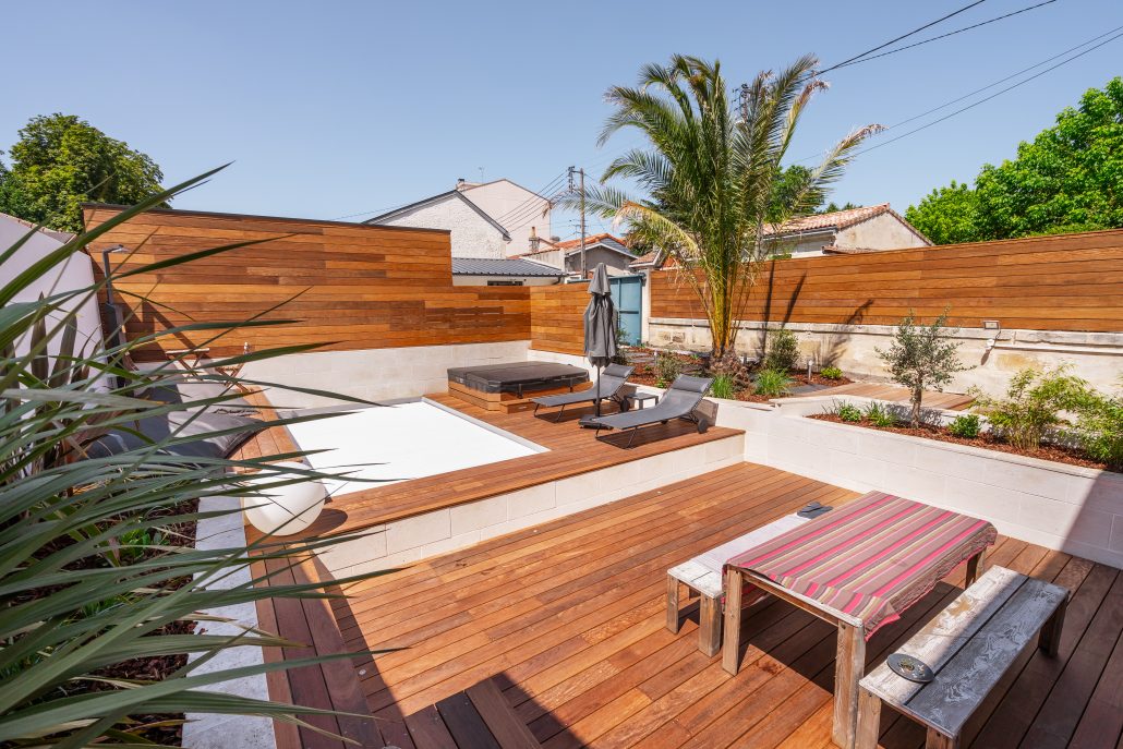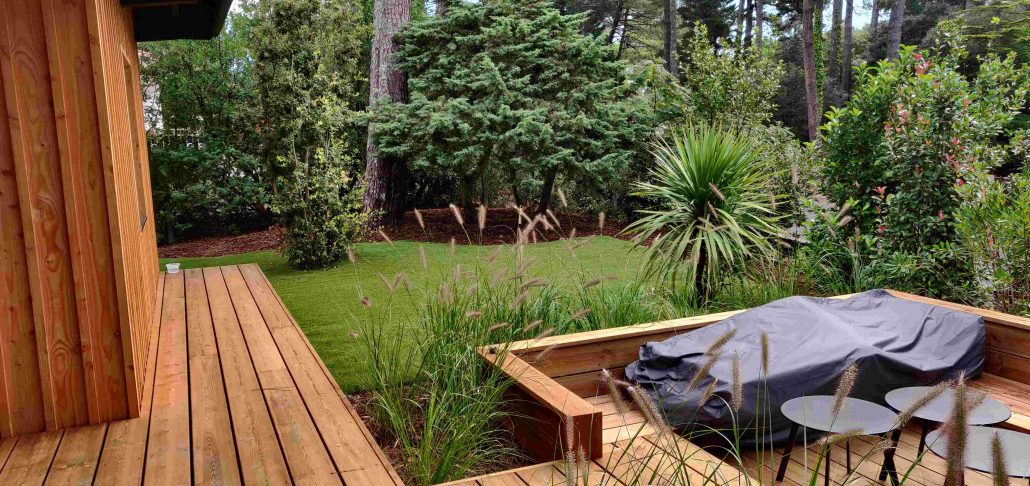 Bois et caillebotis : terrasses, passerelles ou espaces détente chaleureux et naturels.