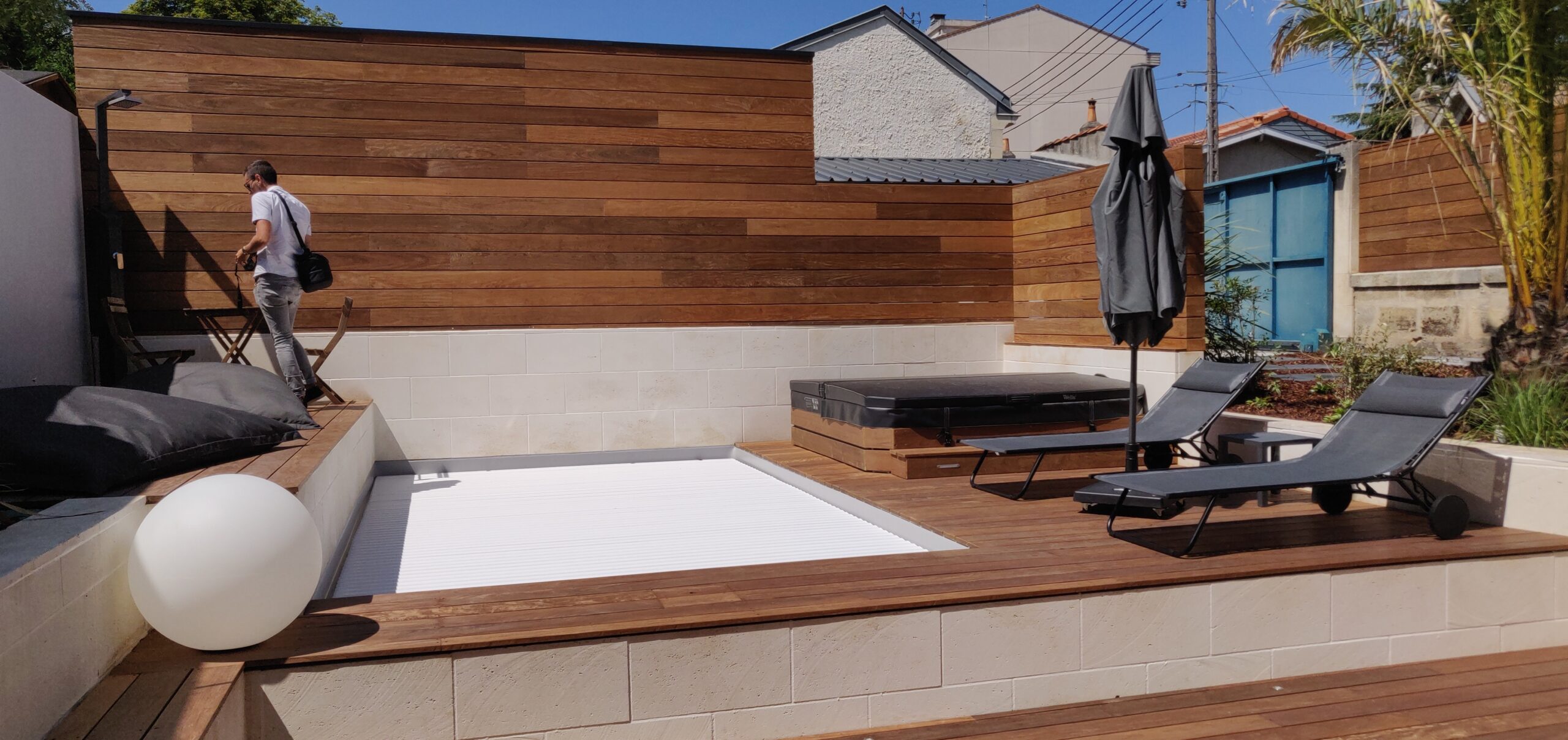 Nous travaillons toutes les essences de bois, sélectionnées pour leur esthétique, leur robustesse et leur durabilité en extérieur : pin autoclave, Douglas, Mélèze, Robinier (faux acacia), chêne, châtaignier, Ipé, Cumaru… et bien d’autres bois européens et exotiques.