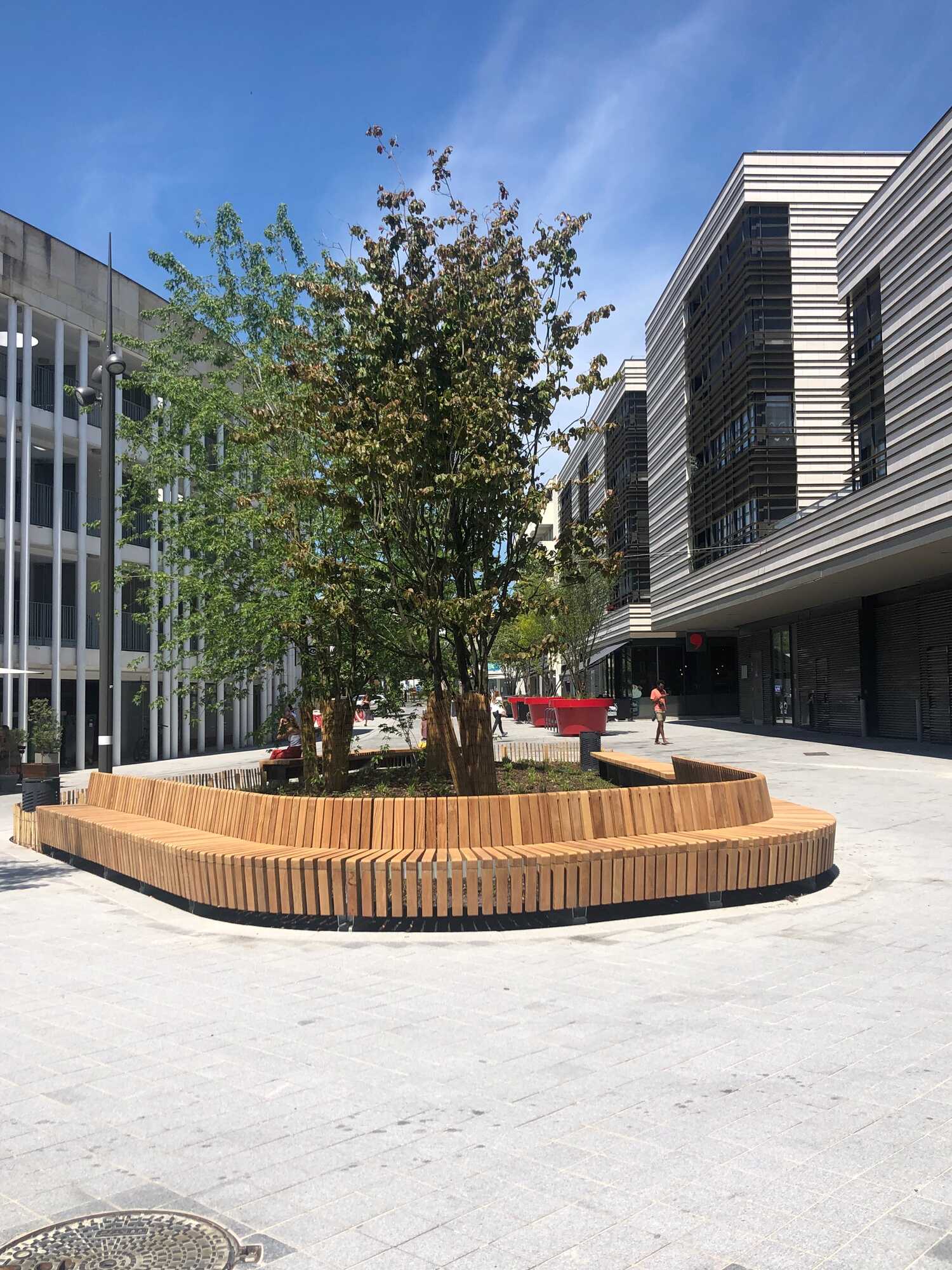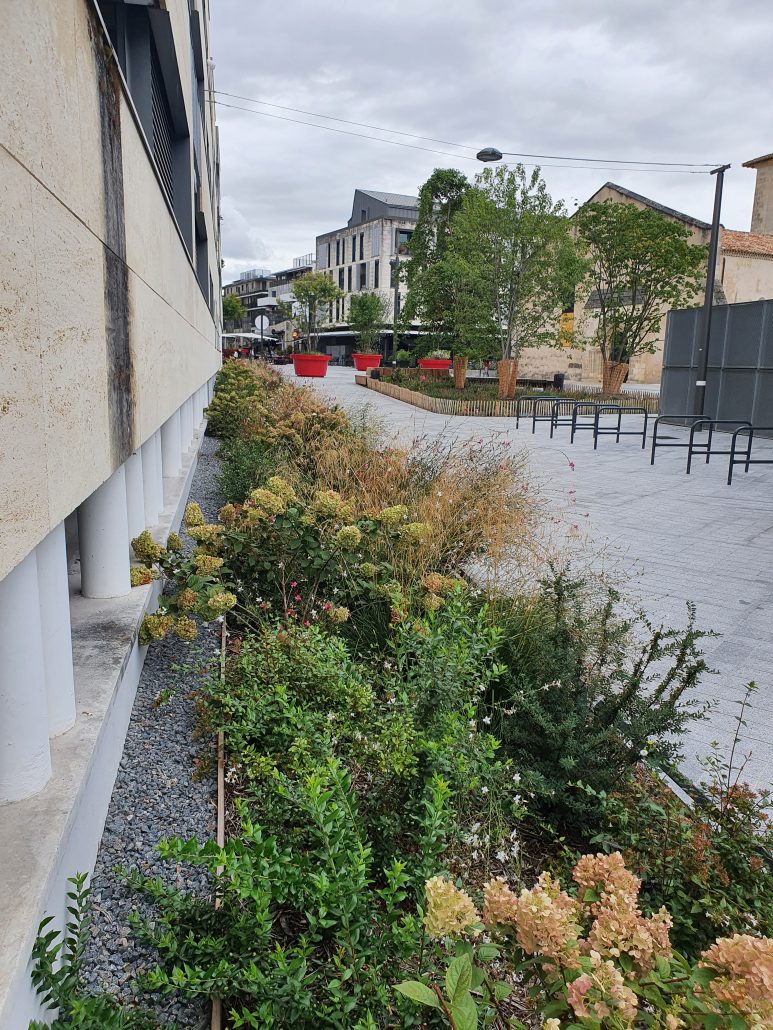 Sabine Haristoy a été l’architecte paysagiste mandatée pour concevoir et aménager les espaces publics paysagers du centre-ville. Sa mission a porté sur l’intégration d’une dimension végétale structurante dans un tissu urbain dense, avec un objectif de qualité environnementale et de confort pour les usagers.